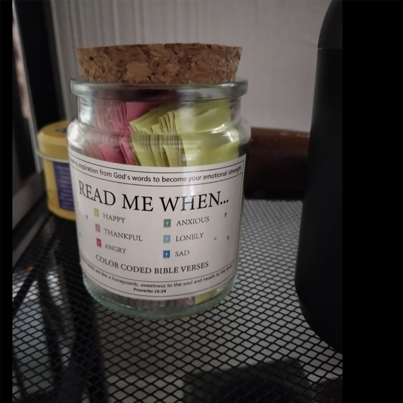 • Das tägliche Auspacken der Worte Gottes wird Sie Gott näher bringen, während Sie heilen und auf ein inspirierteres Leben zusteuern. 🫙Hergestellt aus hochwertigem Glasmaterial, entworfen für eine dauerhafte Haltbarkeit.