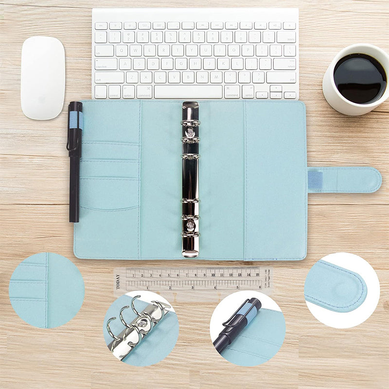 • Praktische A6-Ordnereinbandgröße: 13 x 19 cm / 5,18 x 7,48 Zoll, hergestellt aus hochwertigem PU-Leder, Design mit versteckten Kartenfächern, Bargeldfächern und Stiftschlaufen, praktisch zum Aufbewahren von Stiften, Karten, Bargeld, Gutscheinen, Briefmarken, Tickets usw