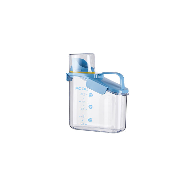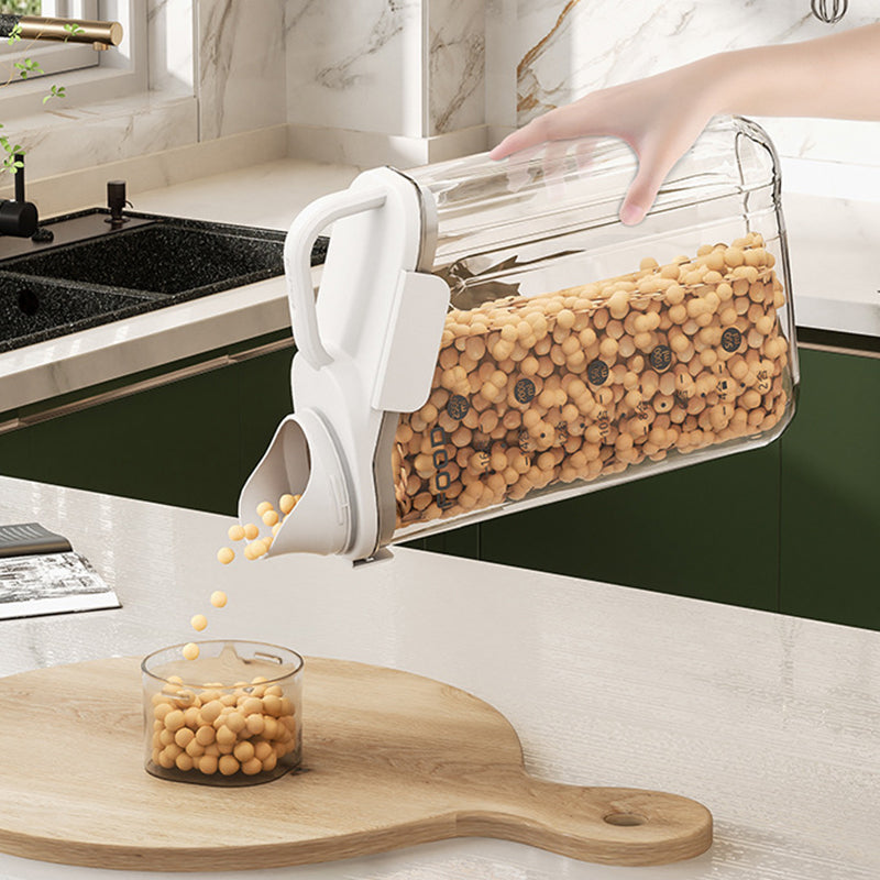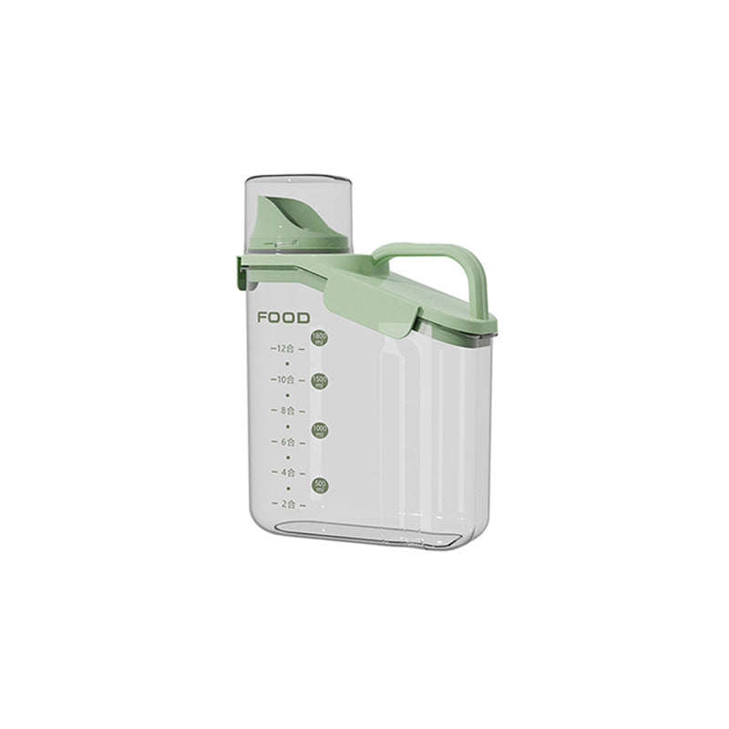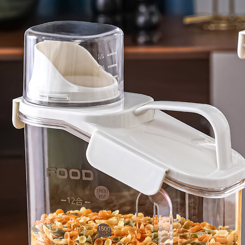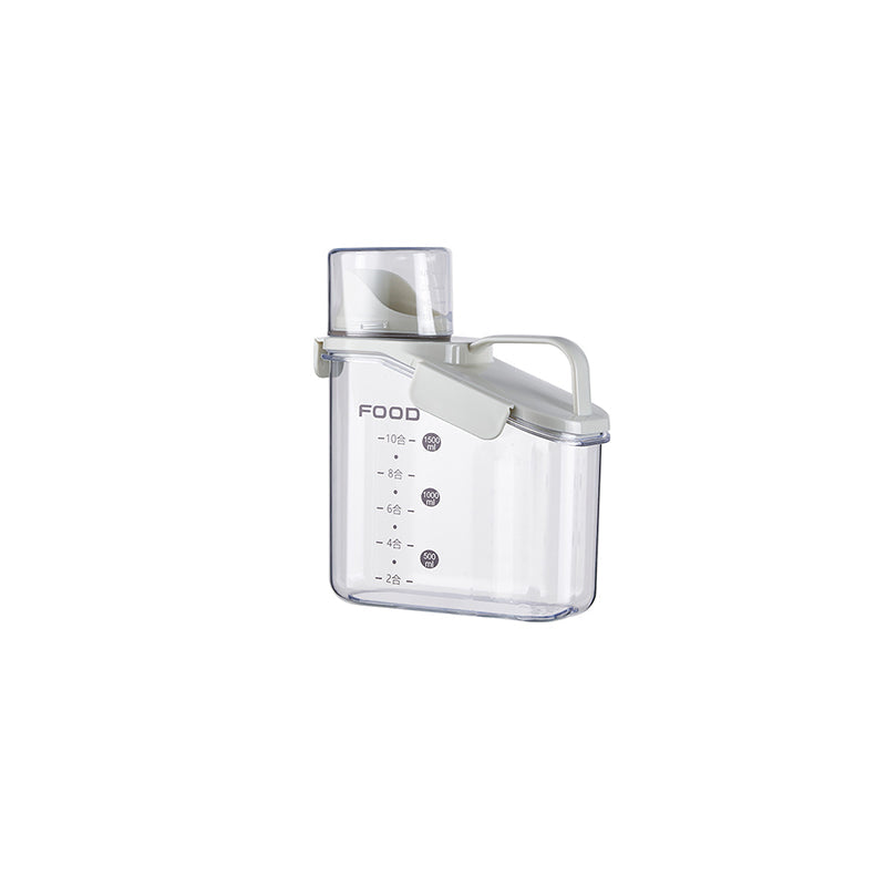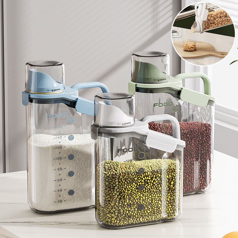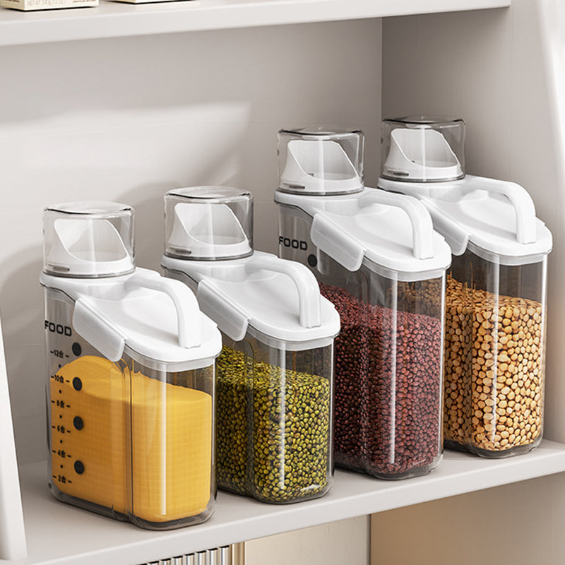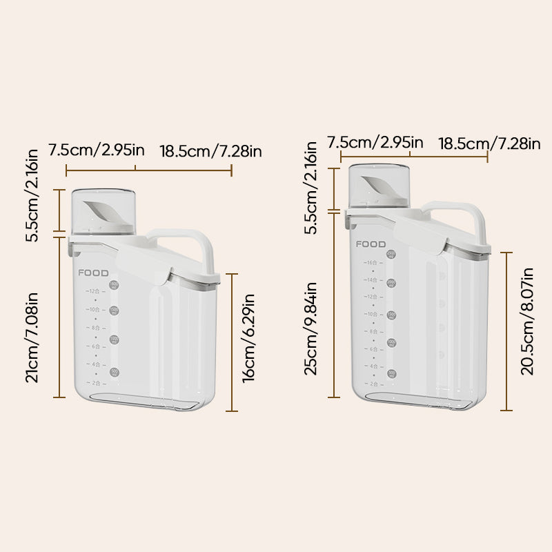 Dieser durchsichtige, luftdichte Behälter ist mit bequemen, ergonomischen Griffen und einem Henkel ausgestattet, sodass Sie ihn mühelos halten können. Außerdem ist dieser Vorratsbehälter mit einer Waage und einem Messbecher ausgestattet, sodass Sie jederzeit den Inhalt der Lebensmittel im Blick haben.