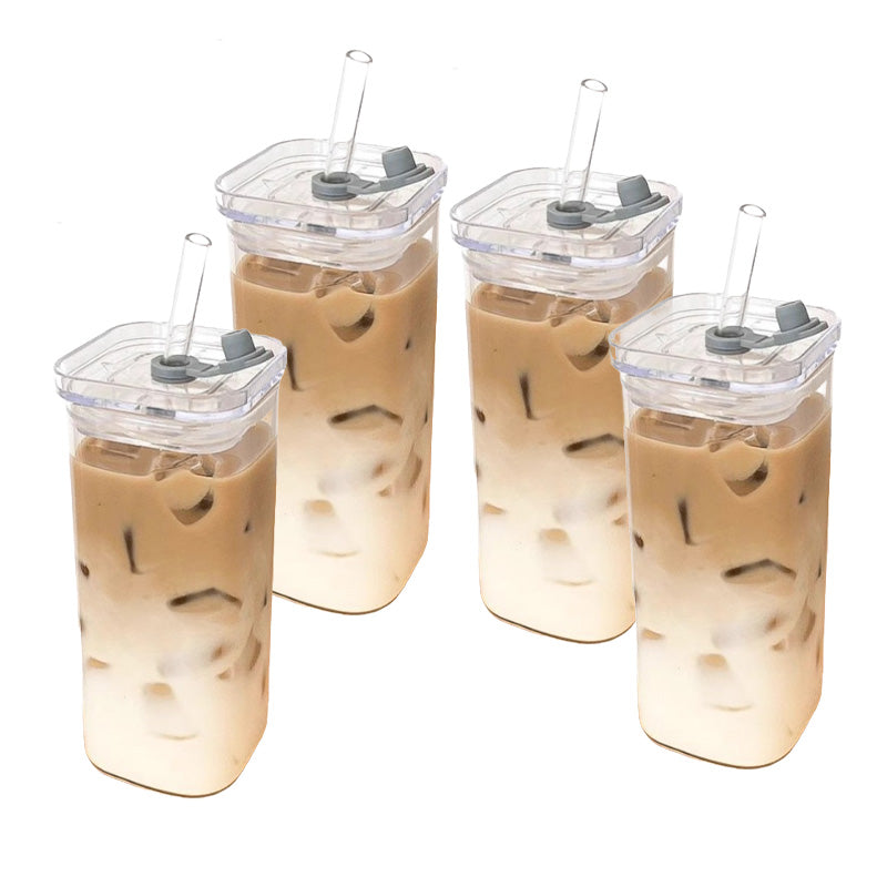 • 1 / 4 / 6 STK x quadratischer Trinkbecher mit Deckel und Strohhalm